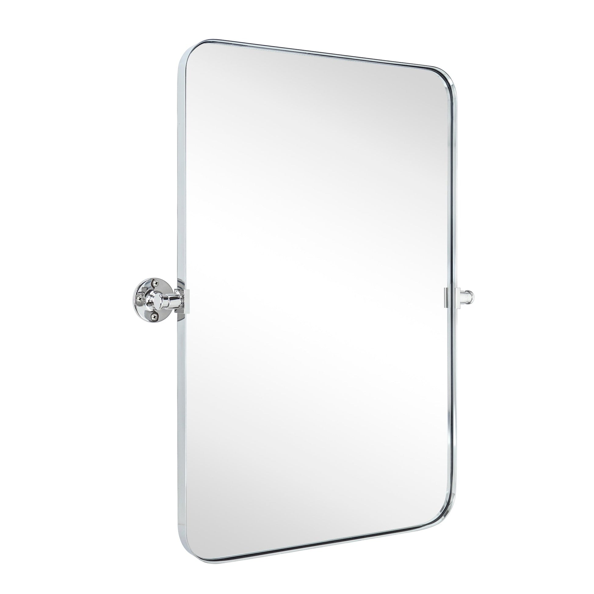 Featuring a sleek look and functional details, our tilt swivel mirror has a straightforward style that's incredibly timeless. A pivoting design lets you adjust this mirror so you can maximize the view, coming with a 1-inch deep stainless steel frame and solid wood backing, making it super safe for bathroom use.