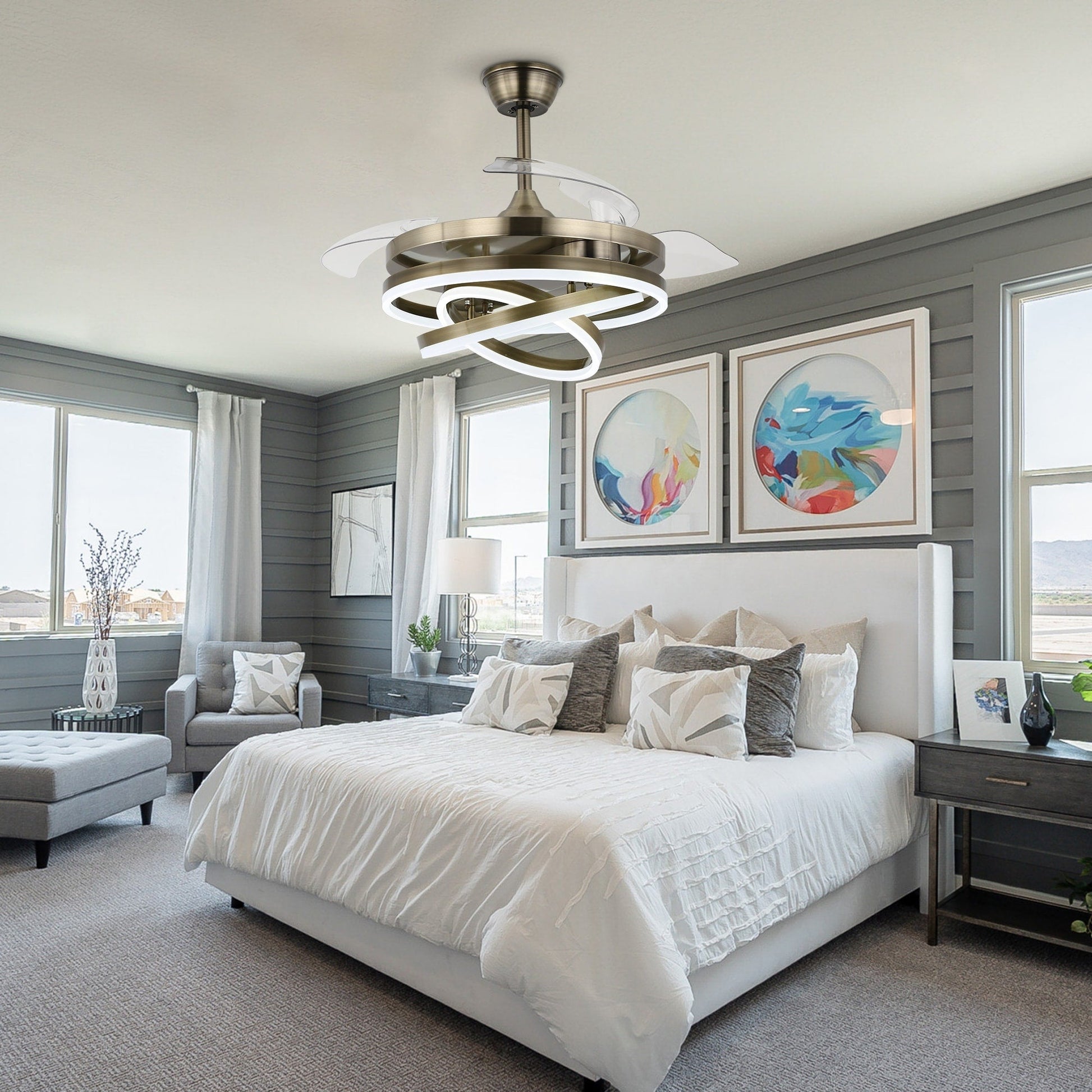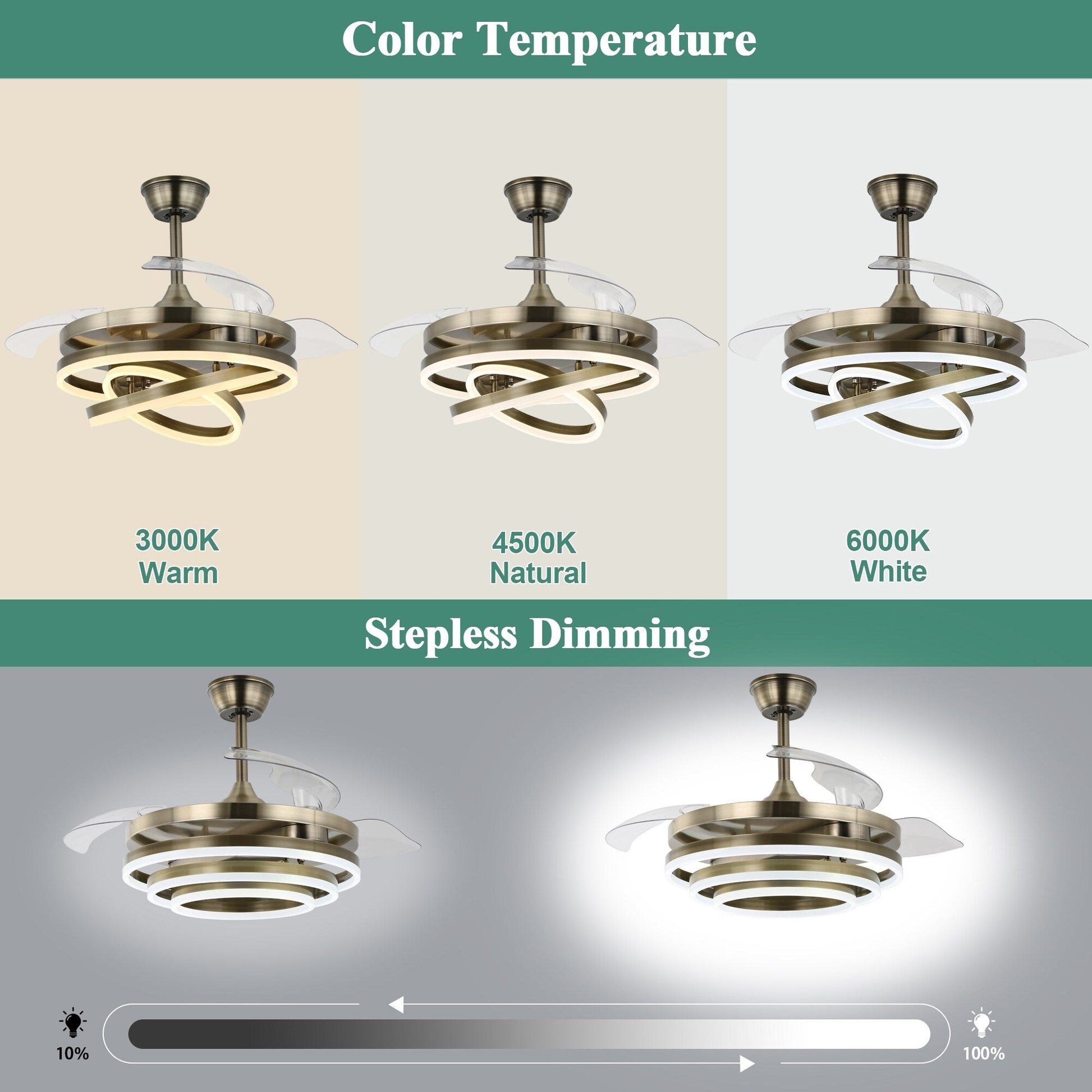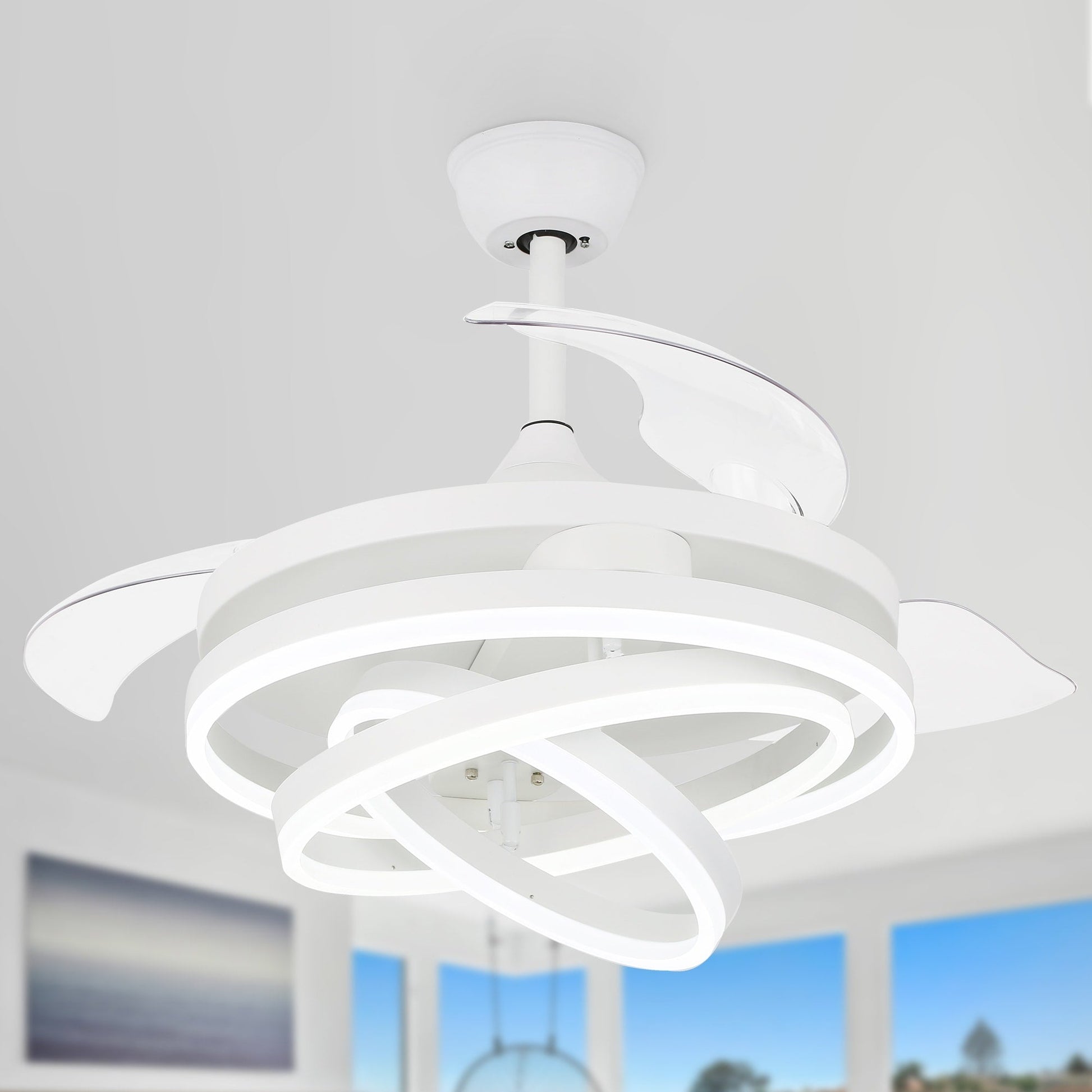 Cusp Barn 42 Retractable Ceiling Fan with Lights and Remote DIY Shape Fandelier Modern Silent DC Motor LED Ceiling Light