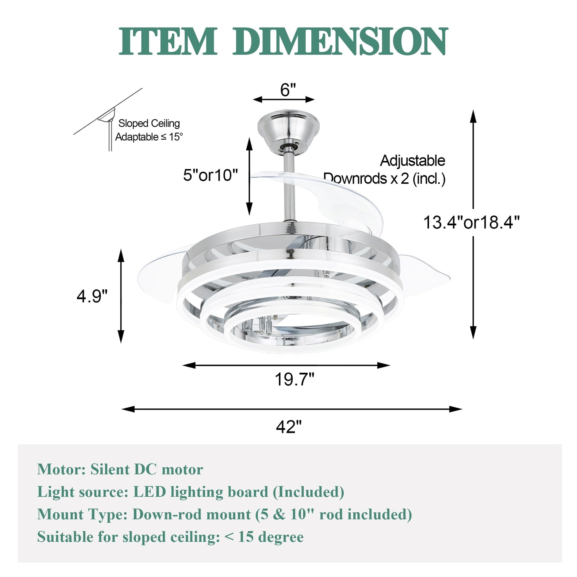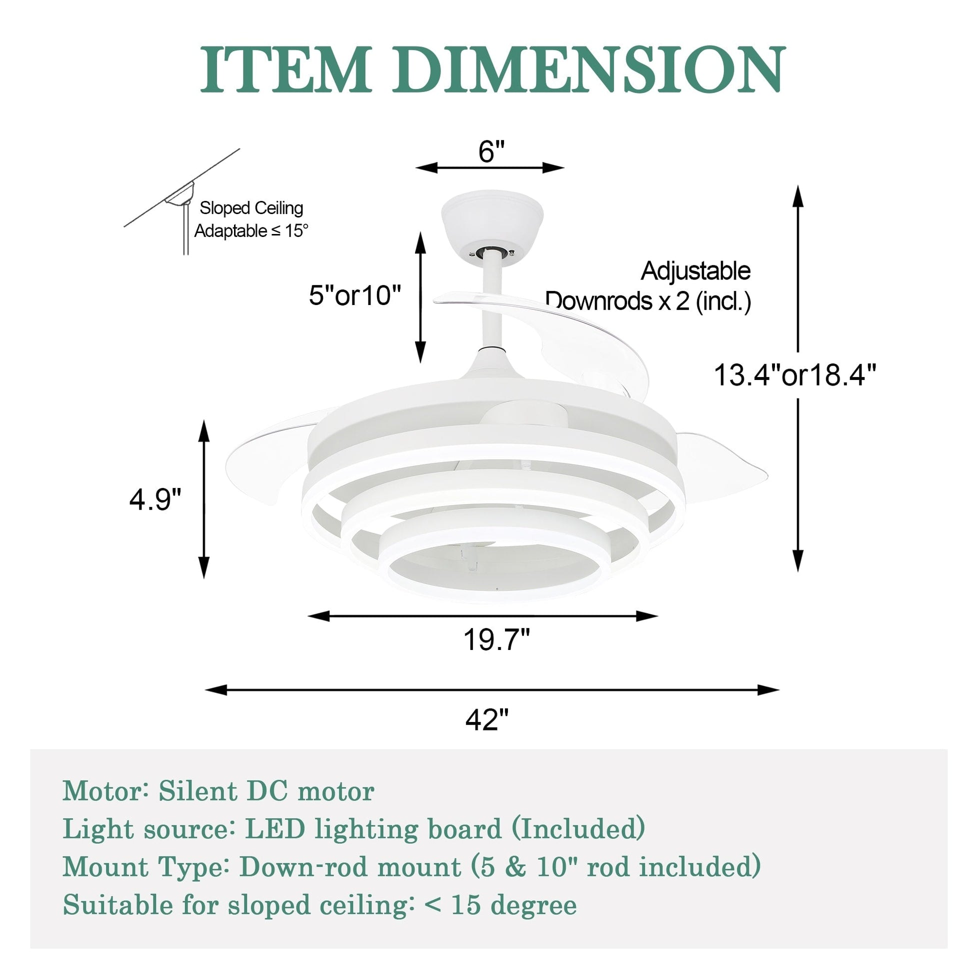 • Sloped Ceiling Adaptable: up to 15 degrees
