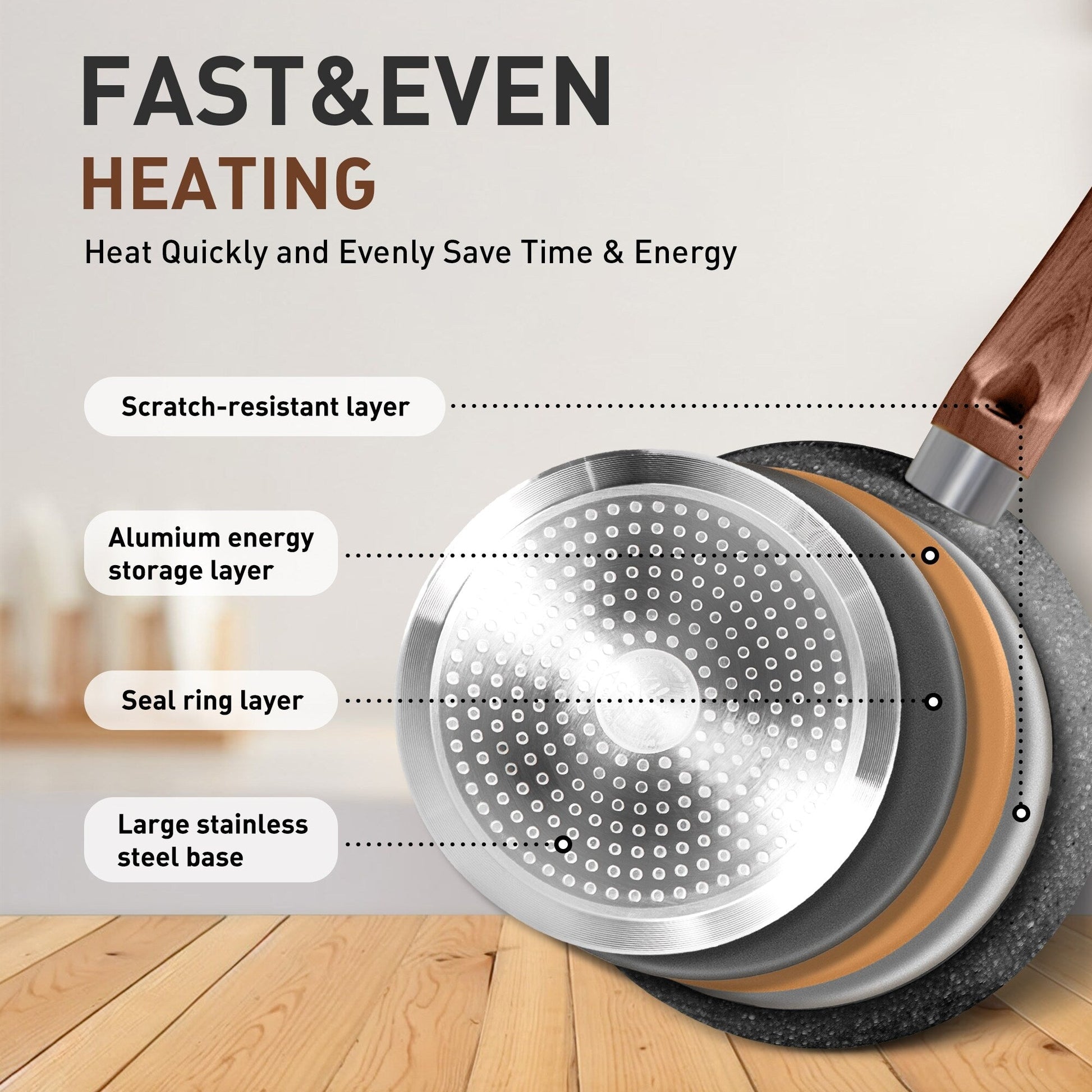 No Toxin Cooking Pans Set:  When purchasing a new kitchenware set, please make sure it clearly states that it is lead-free, PFOS-free, and PFOA-free. Cooking pans cannot contain these three substances as they pose potential risks to the body. Fortunately, you can get granite cookware that is free of these harmful chemicals. For more healthy & Eco-friendly.