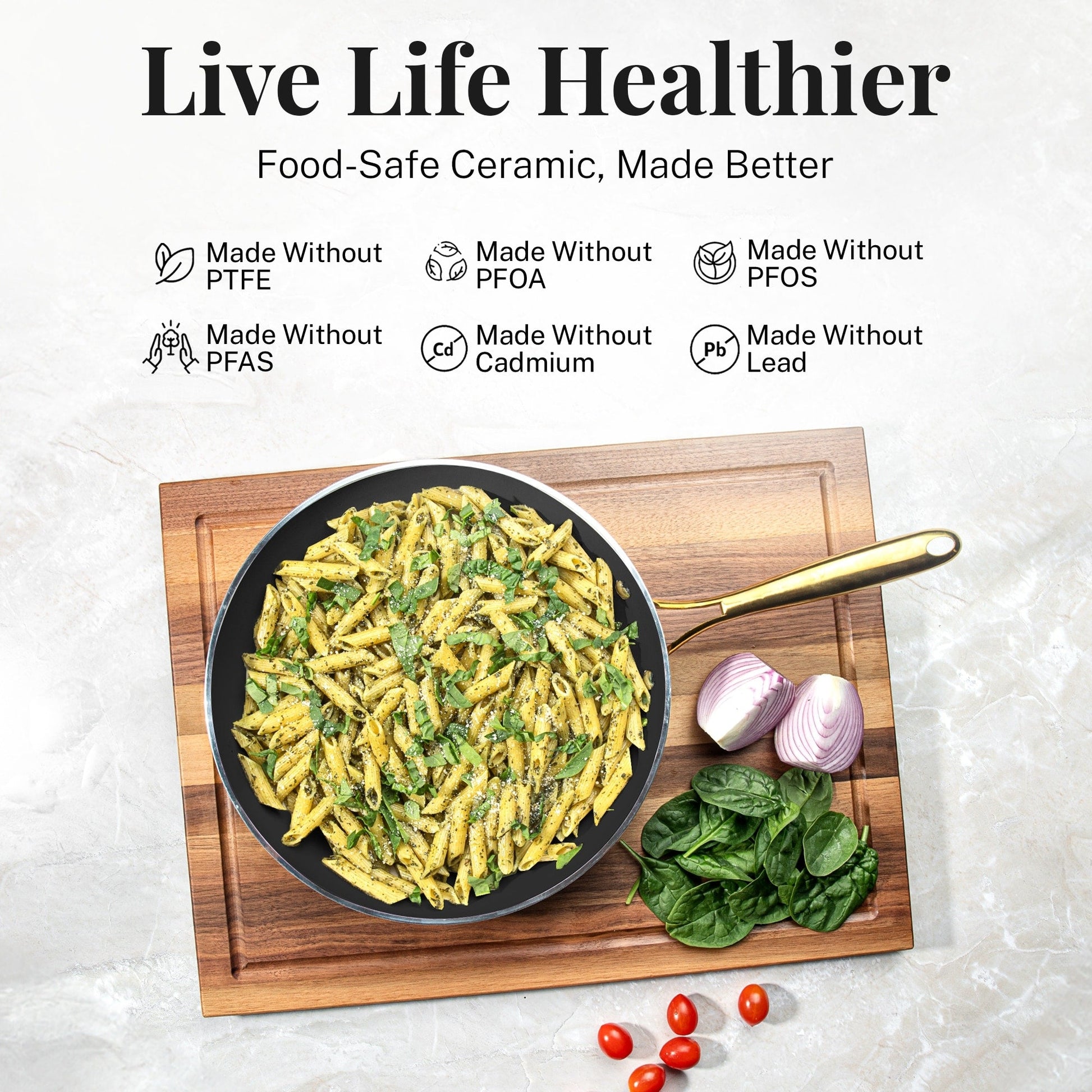 • Ultra Ceramic Nonstick Coating: Features a double-coated ultra nonstick ceramic surface for easy food release, healthier cooking with minimal oil or butter, and effortless cleanup.