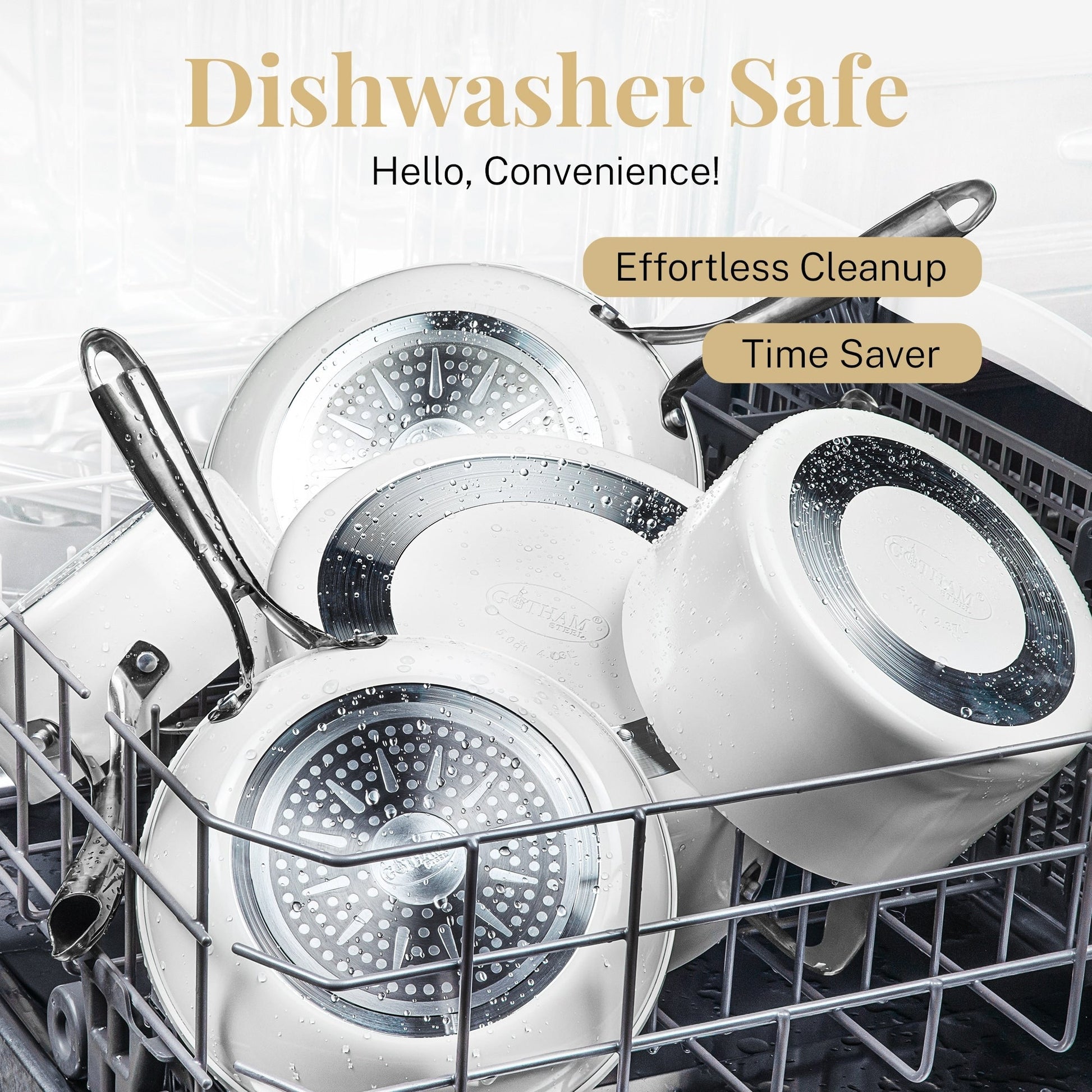 • Stylish and Durable Design: Featuring a chic cream color, stainless steel stay-cool handles, and tempered glass lids, this cookware is lightweight and durable, perfect for modern kitchens with a touch of elegance.