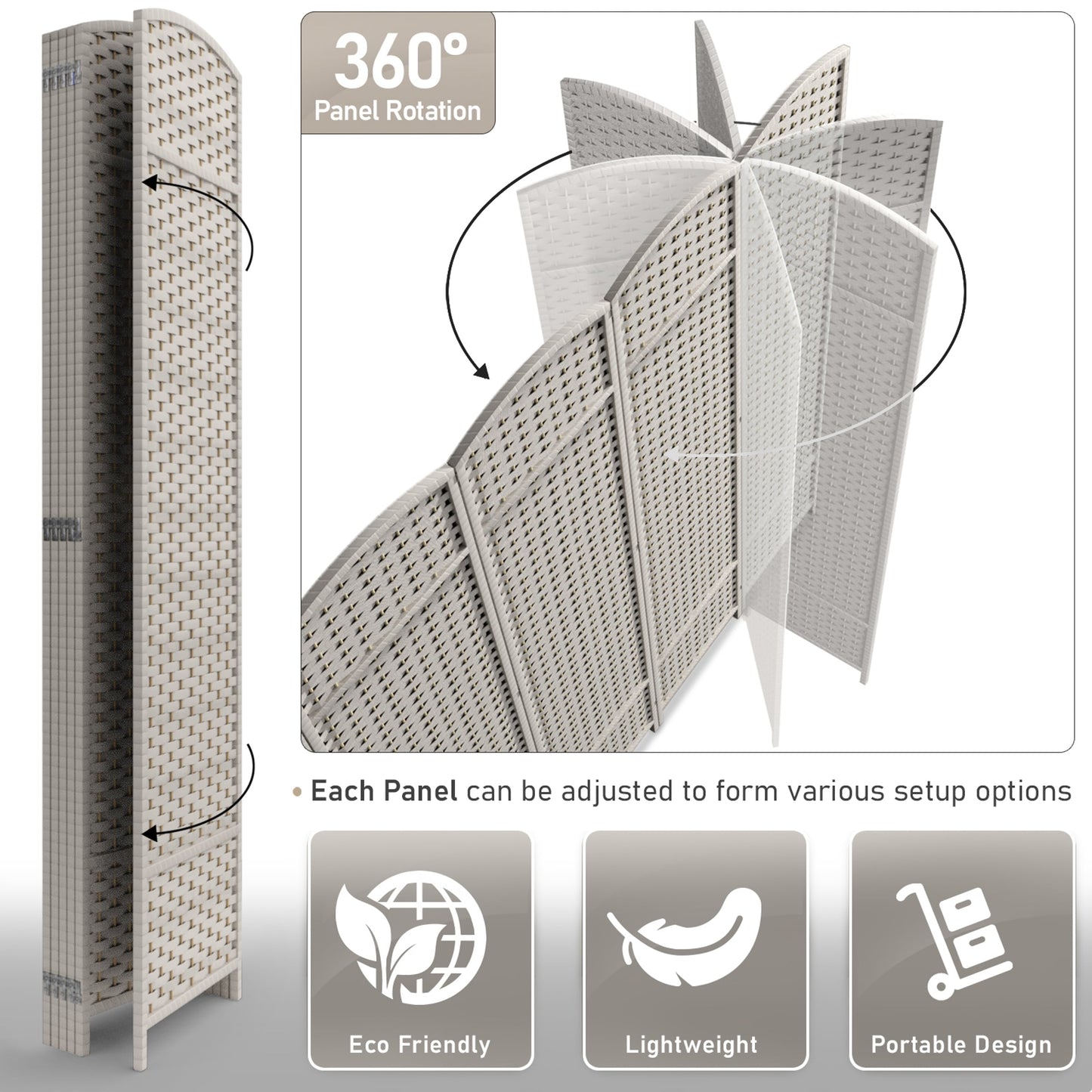 • Versatile Functionality: Use as a room divider wall, partition wall, folding privacy screen, privacy wall, panel room divider, or freestanding privacy screen