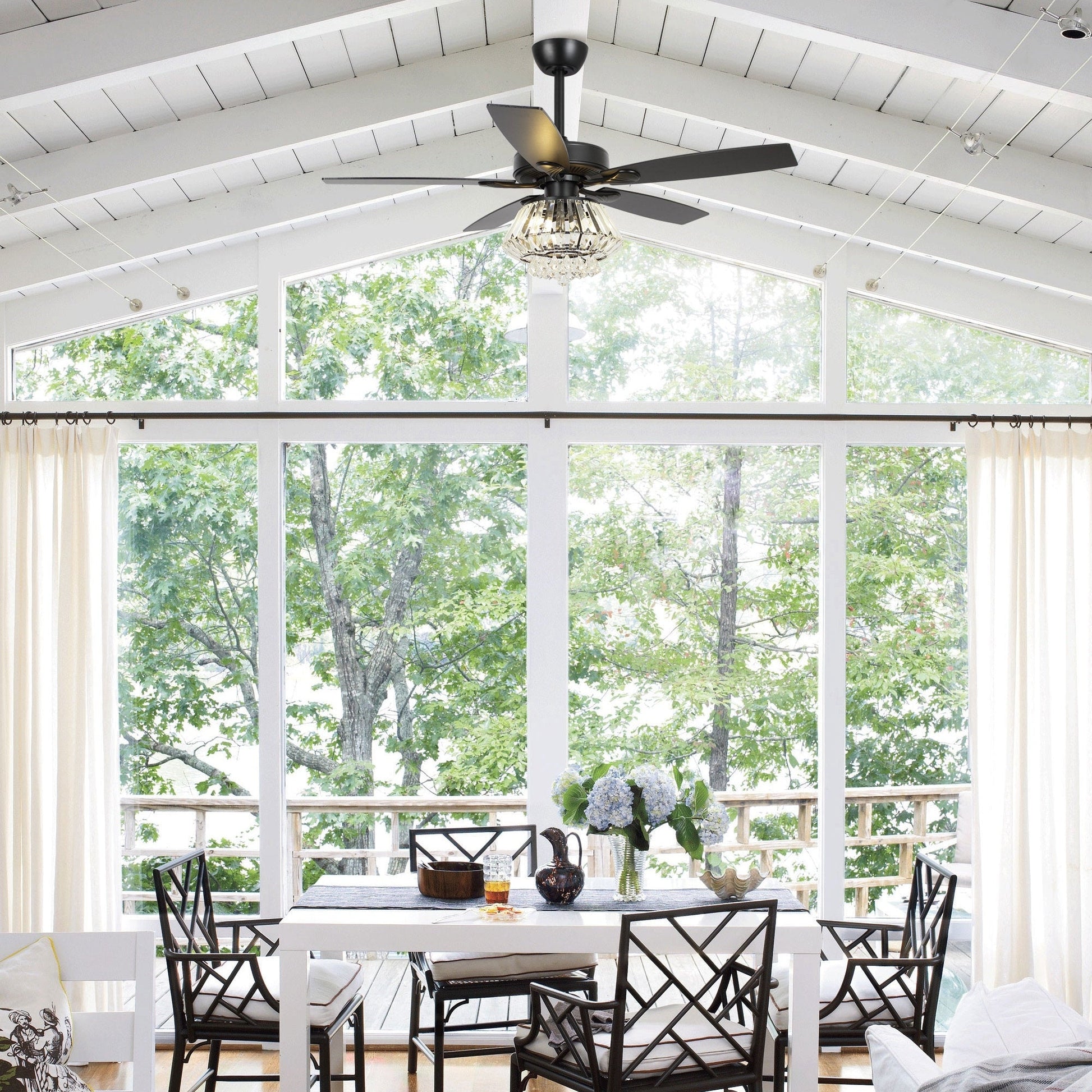 Modern Chrome 52-inch Crystal Chandelier Ceiling Fan with...