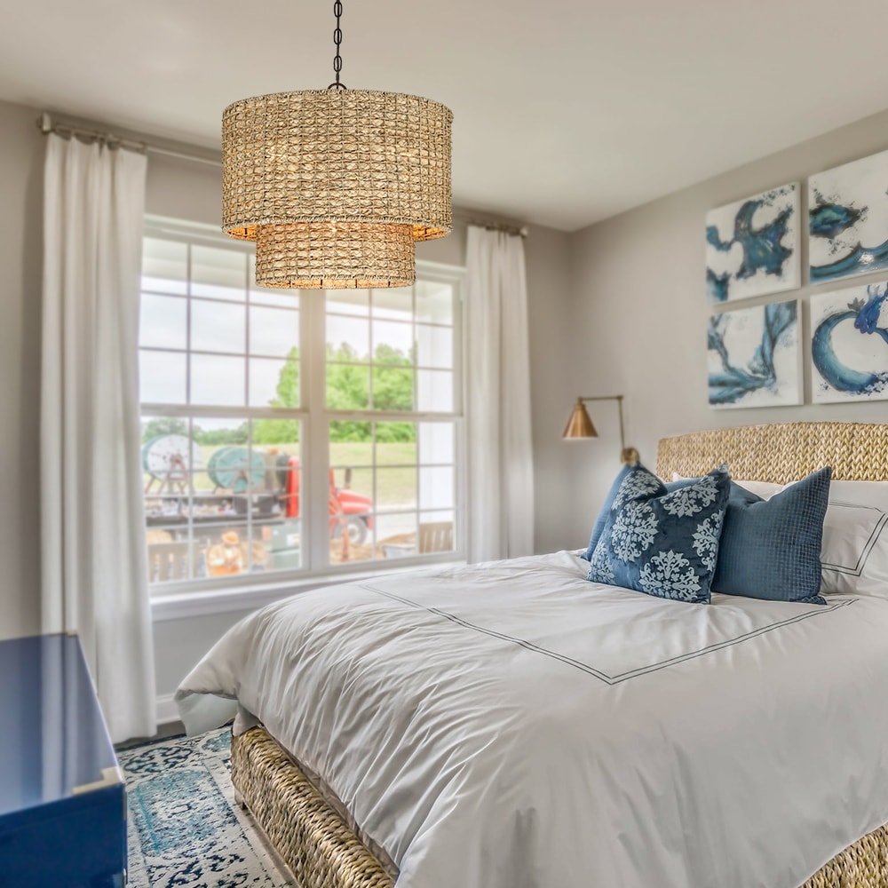 4-Light Natural Rattan Traditional Drum Pendant Light Black...