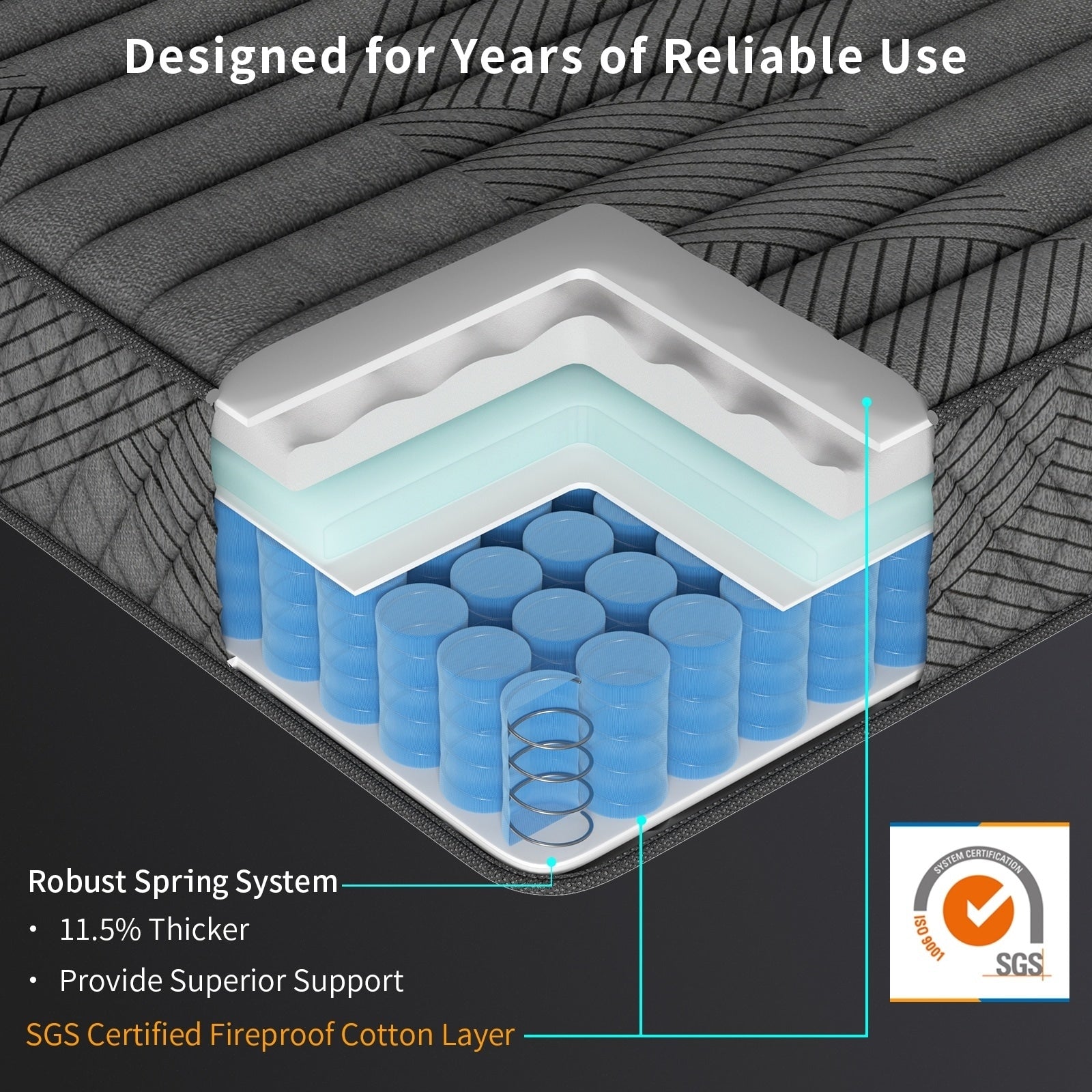 • Coil springs 11.5% thicker than market standard: Provides better support, longer lifespan, and prevents collapsing.