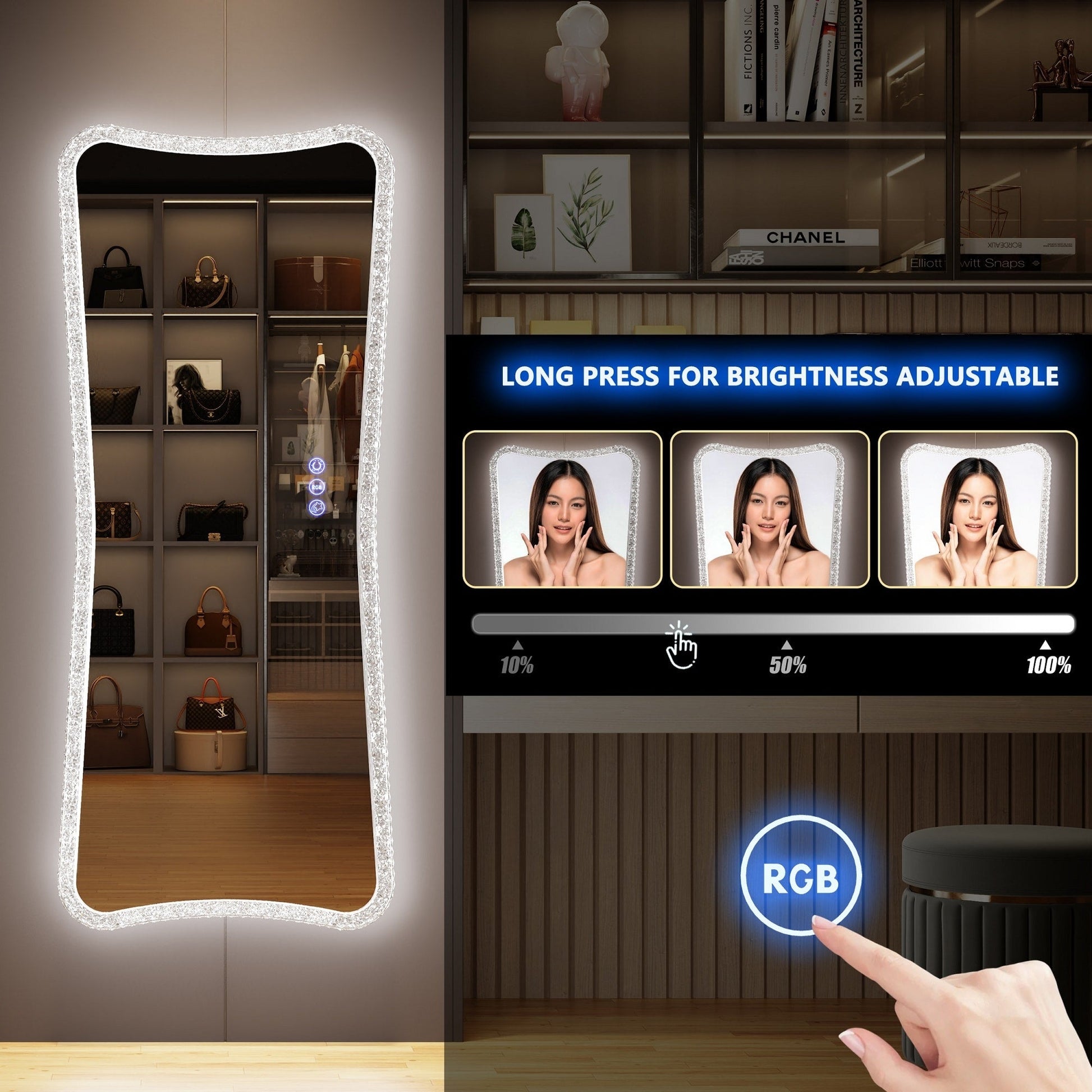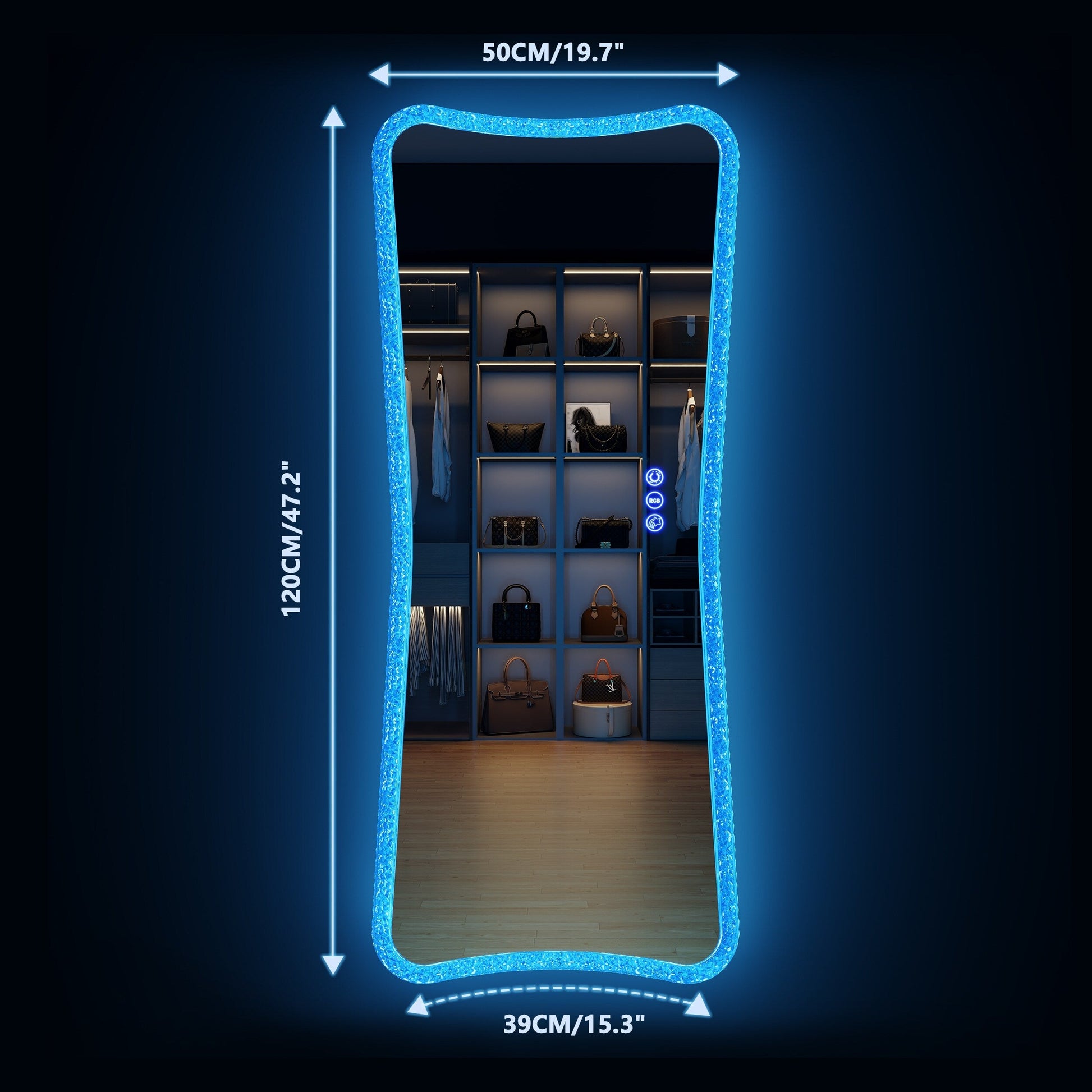• The full-length mirror with lights surrounded by 50,000 hours life high brightness LED Light Strip, with 7 Dynamic Mode Lights and 7 Static Mode Lights settings, with adjustable brightness of 0%-100% can meet your personal makeup requirement.