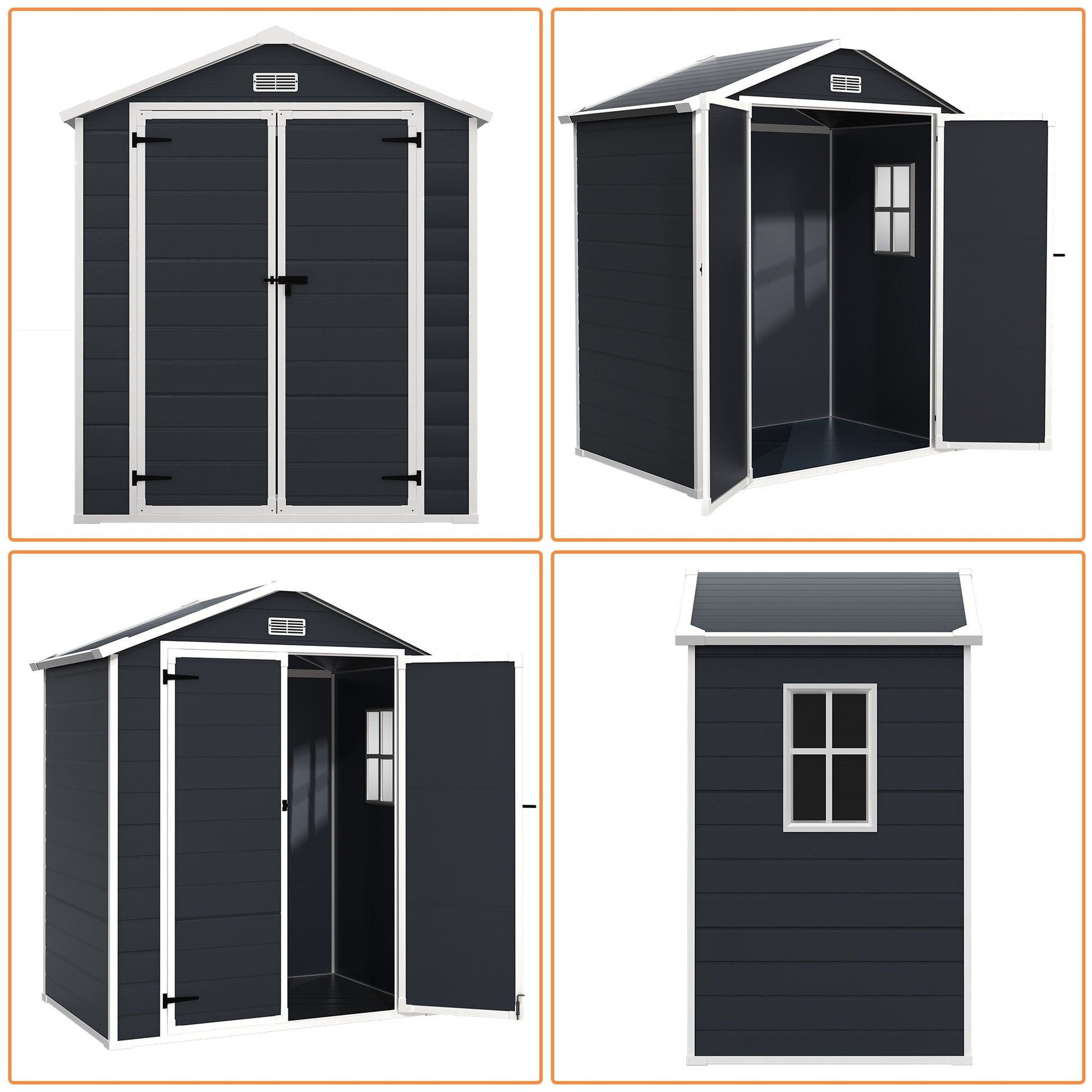 6 ft x 4 ft/6 ft x 8 ft/8 ft x 6 ft/8 ft x 10 ft All-Weather Resin Outdoor Plastic Storage Shed w/Floor, Spire Tool Shed
